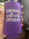 Drinks Well With Others Can Coozie Cooler 12oz Slim Cans. Screen printed on a thick, quality collapsible neoprene can coozie / can cooler. Fits standard slim cans such as energy drinks, seltzer drinks, and skinny beers.