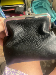 Not your Grandma's coin purse! Carry your excess change in a stylish way. Perfect for your purse, your glove compartment, kitchen drawer - any place you need quick access to change! Classic clip closure. Outside open pocket. Two interior compartments. Vegan leather. Dimensions: 5.5w x 5.5h.