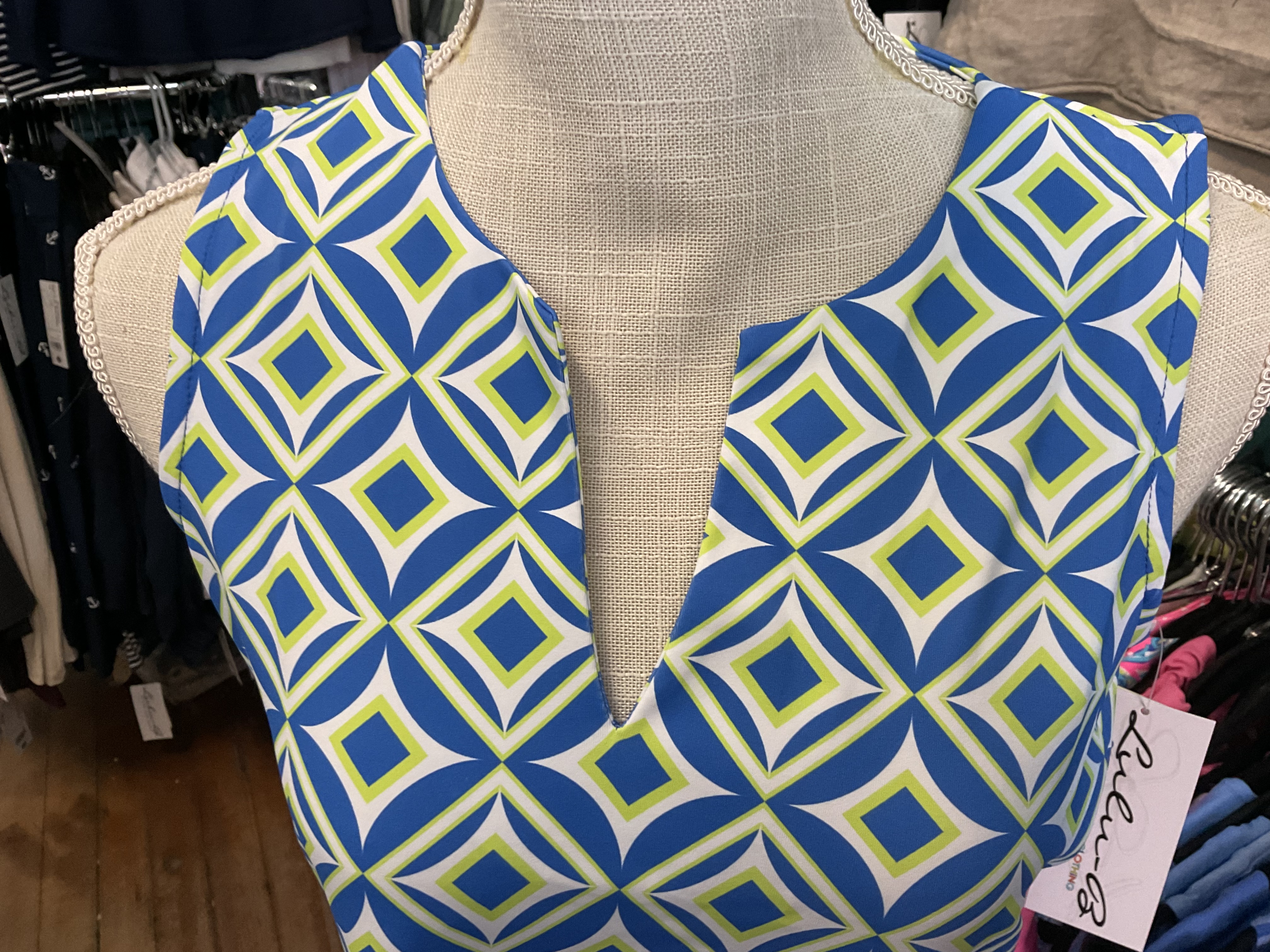 Dress, SMALL LEFT Sleeveless Open Cut Lime Navy Turq LuLu B