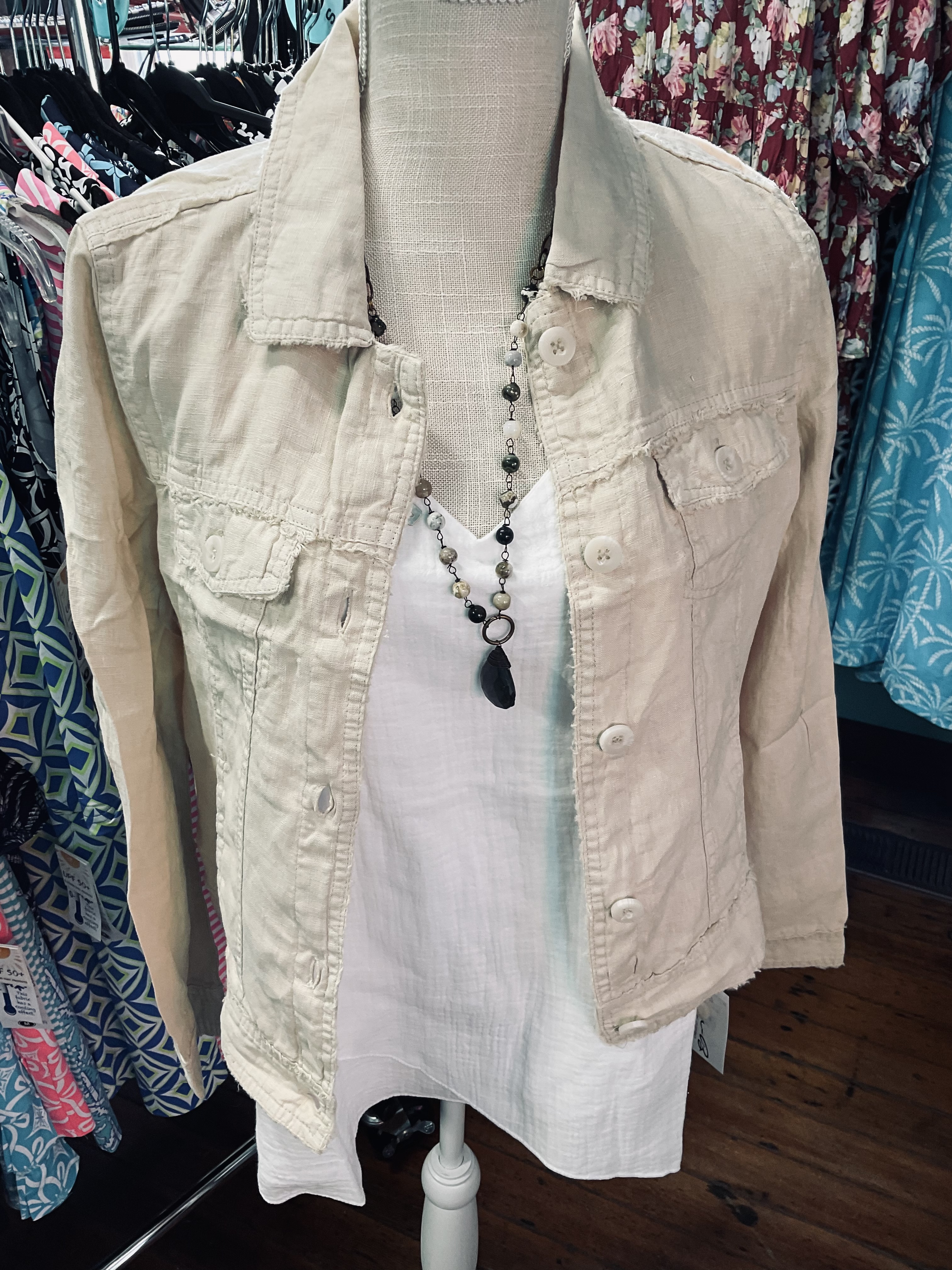 Sassy and comfortable, this LuLu B linen Jacket with two side pockets is all that and more! Perfect with any top, shorts, skorts and pants too!