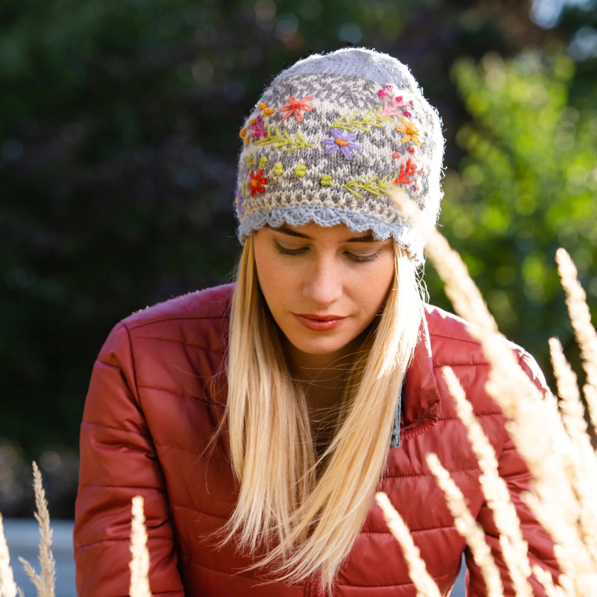 The Sadie Beanie brings together timeless craftsmanship and cozy charm in one delightful winter accessory. A soft fair isle knit serves as the backdrop for cheerful hand-embroidered flowers, each one stitched by skilled artisans in Nepal. A scalloped crochet trim adds a vintage touch, while the inside features a cozy fleece-lined band to keep your ears warm on frosty days. Pair it with the matching fingerless mittens for a sweet, coordinated cold-weather look.