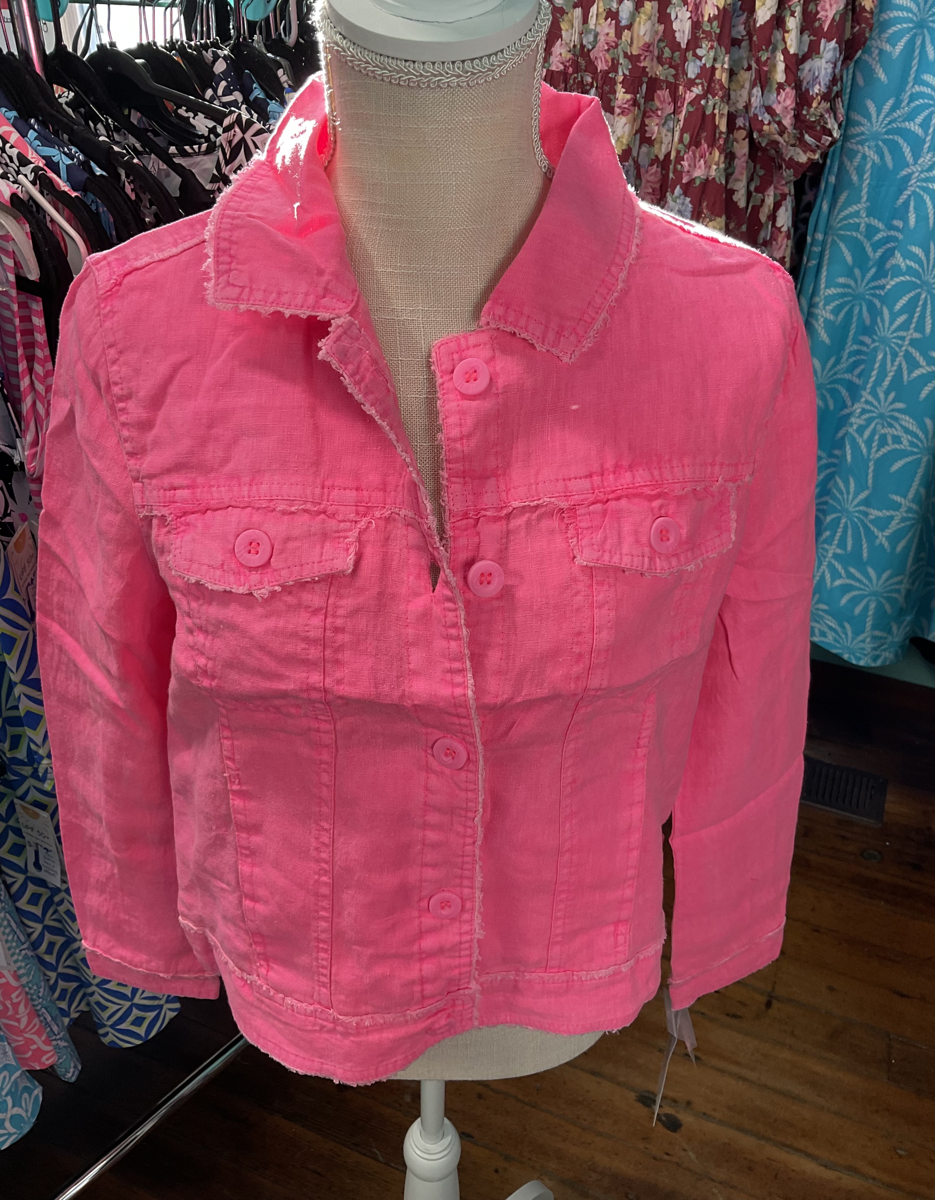 Sassy and comfortable, this LuLu B linen Jacket with two side pockets is all that and more! Perfect with any top, shorts, skorts and pants too!