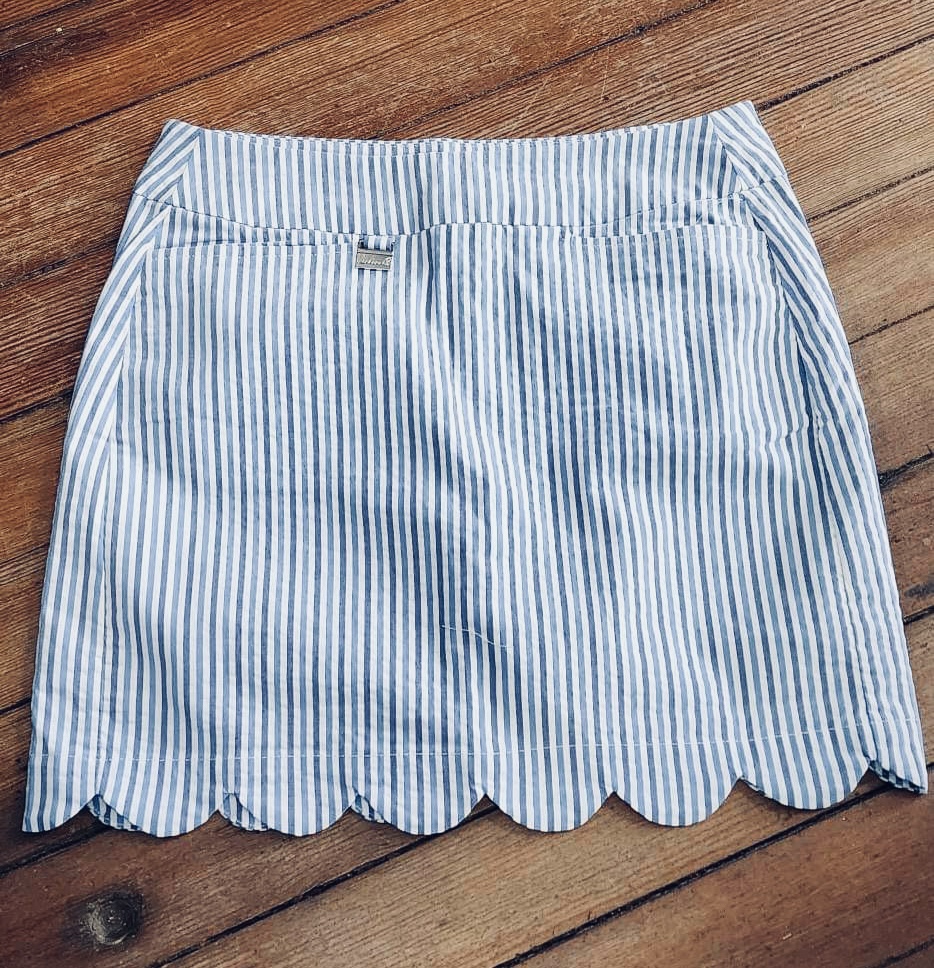 4 pocket scalloped hem.