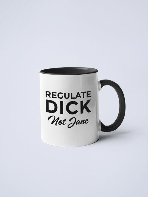 Regulate Dick Not Jane Ceramic Mug. Dishwasher Safe. Microwave Safe. There is an 11oz and 15oz mug size to choose from.