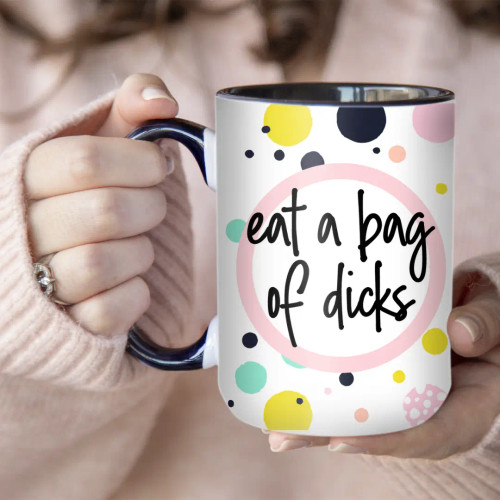 Indulge in your favorite beverage with The Pretty Things' Eat A Bag Of Dicks mug. This 15 oz coffee mug, crafted with care, is not just a drinkware, it's a statement. With its bold design and cheeky graphics, it's a perfect blend of pretty and profane, just like you. Its robust build ensures it's dishwasher and microwave safe, providing convenience in your daily routine. Make your kitchen tabletop more expressive with this unique mug.