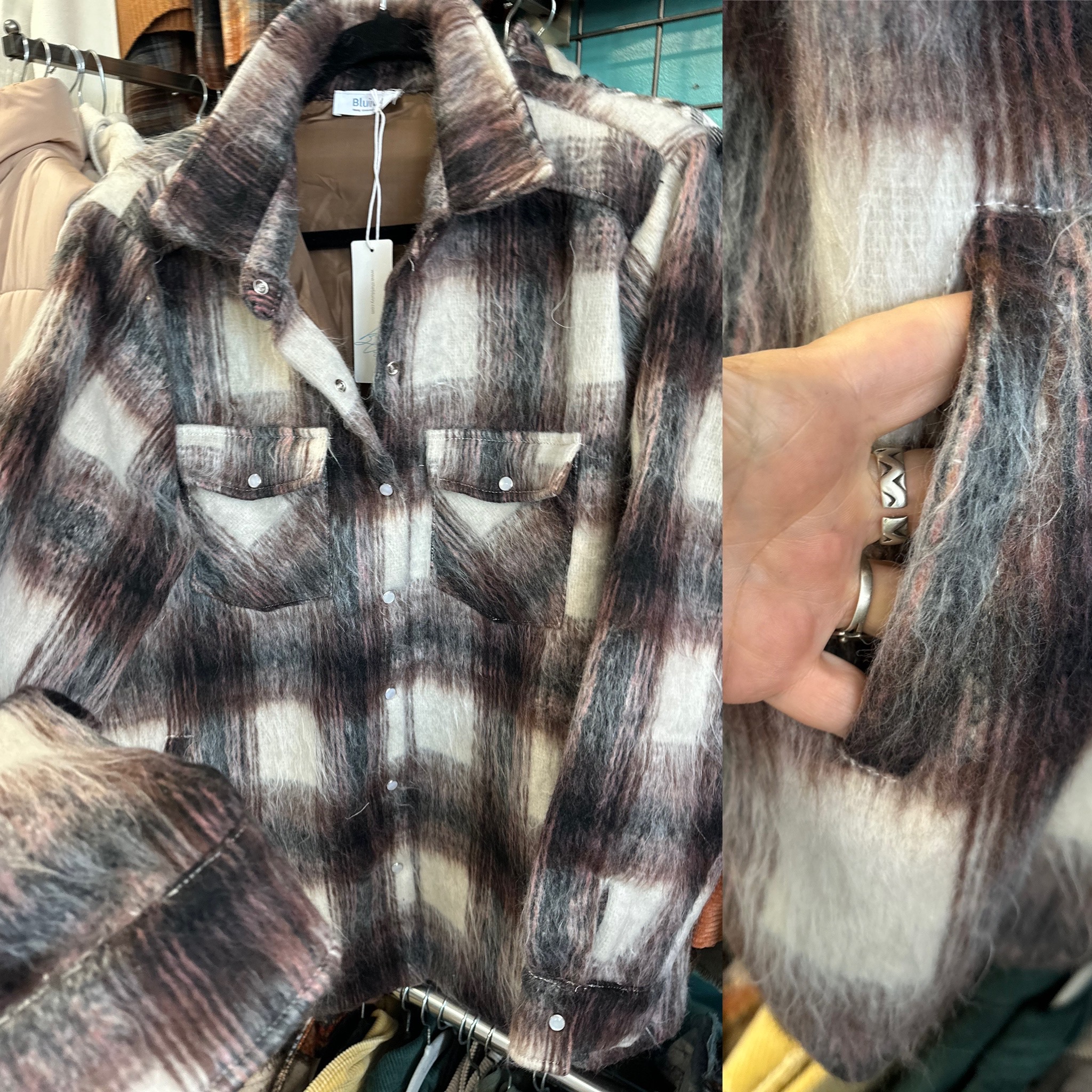 The brushed flannel button-down shacket combines the warmth of a jacket with the casual style of a shirt. Crafted from soft, brushed flannel fabric, this shacket features a button-down front and a relaxed fit, making it a versatile layering piece. The classic plaid pattern adds a timeless touch, while the durable construction ensures it can withstand cooler weather. Ideal for layering over tees or sweaters, this shacket provides both comfort and style for a cozy, laid-back look. -Model is 5'9" and wearing a Small
