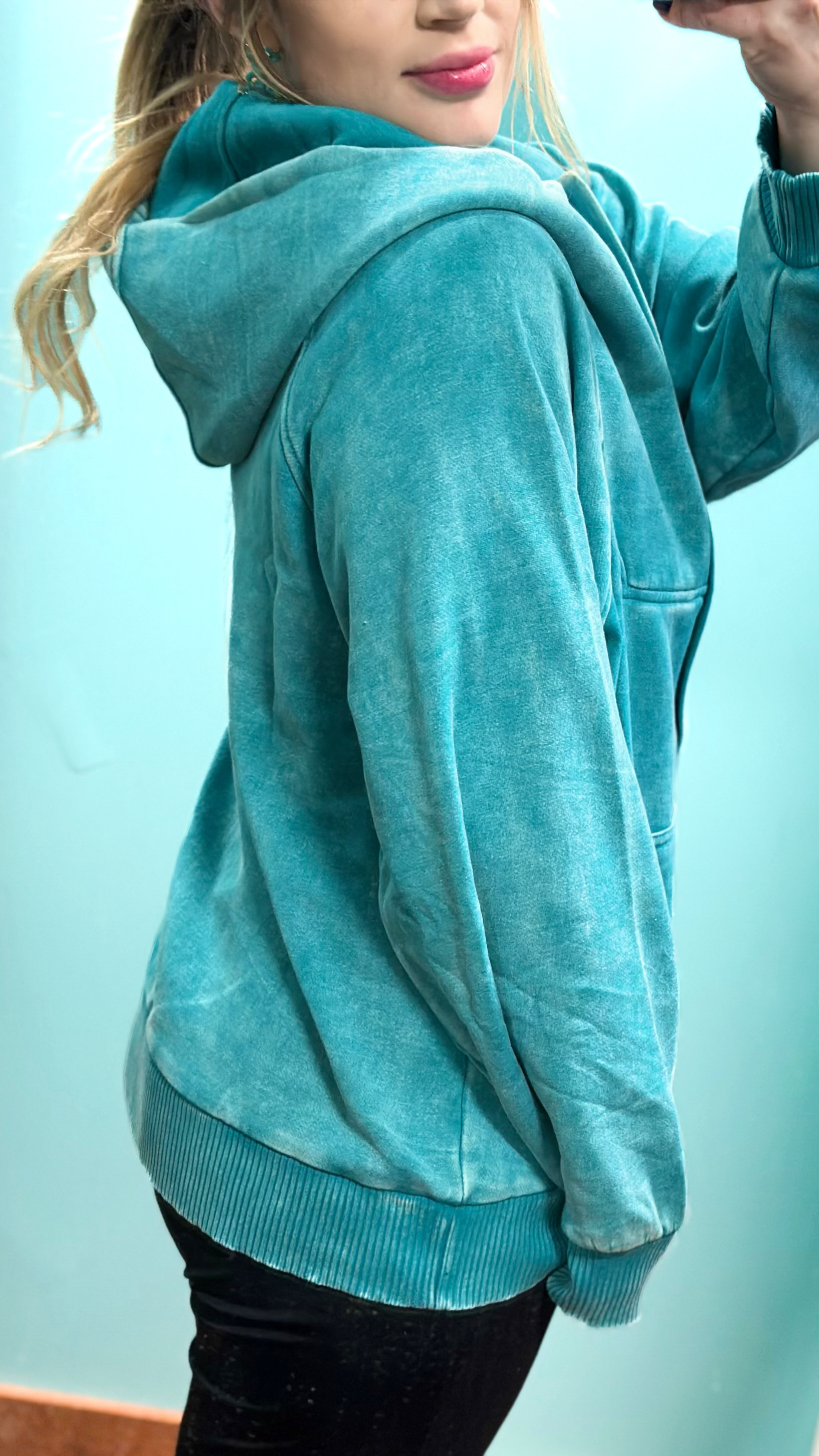 Acid Wash Fleece Oversized 1/4 Zip Kangaroo Hoodie - 1/4 Zip Closure - Kangaroo Pocket **each Item Is Unique, Expect Variations In Color And Finishing Total Body Length: 26", Bust: 43" Approx. - Measured From Small - Trim: 58% Cotton 37% Polyester 5% Spandex * Color May Vary Slightly Due To Monitor Resolution Fabric 60% Cotton 40% Polyester