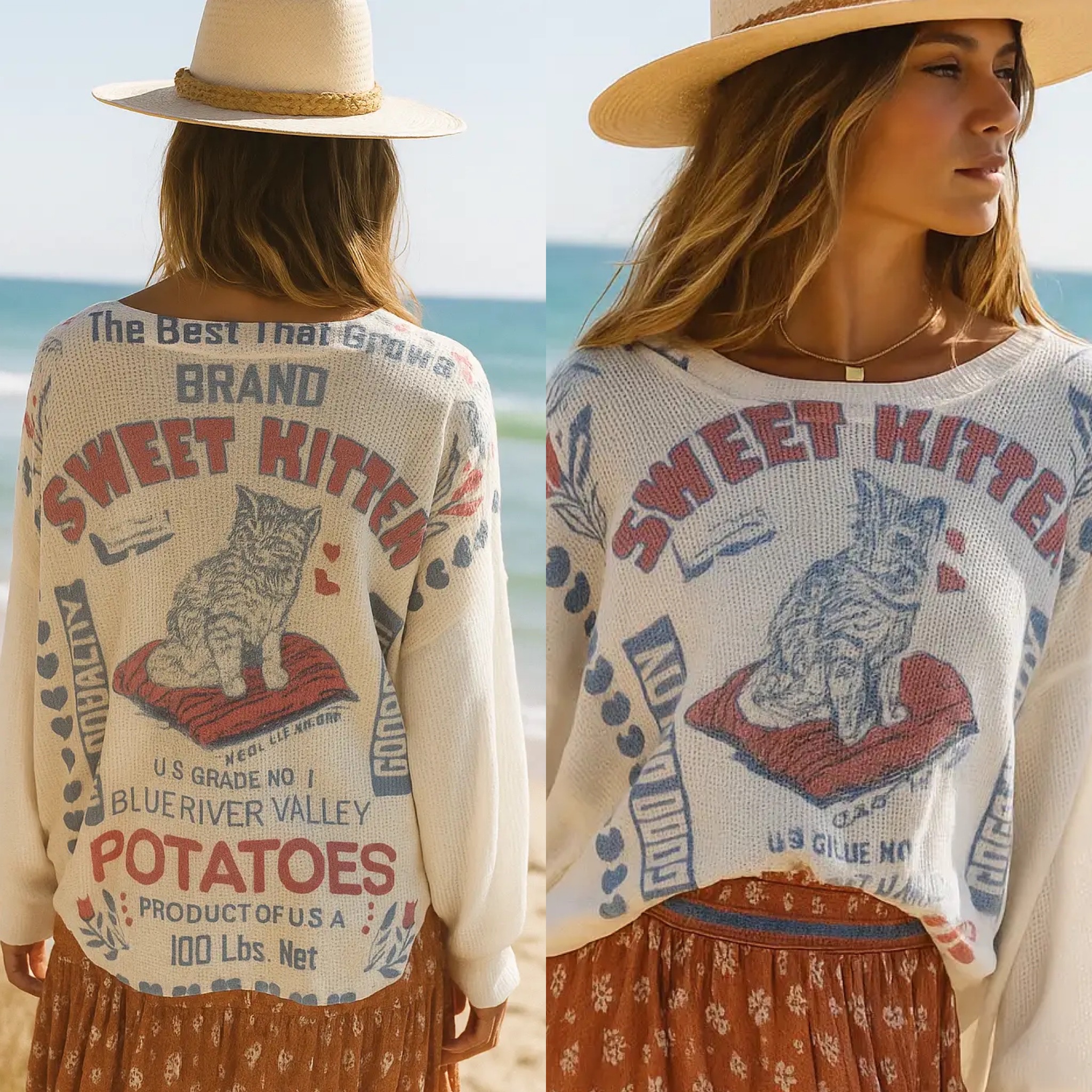 The Sweet Kitten Thermal by The Nu Vintage is a unique addition to any woman's wardrobe. This graphic sweatshirt is a testament to the brand's commitment to quality and innovation. Inspired by a diverse world of color and texture, each sweatshirt is a unique piece. Stay comfortable and stylish with this thermal sweatshirt.