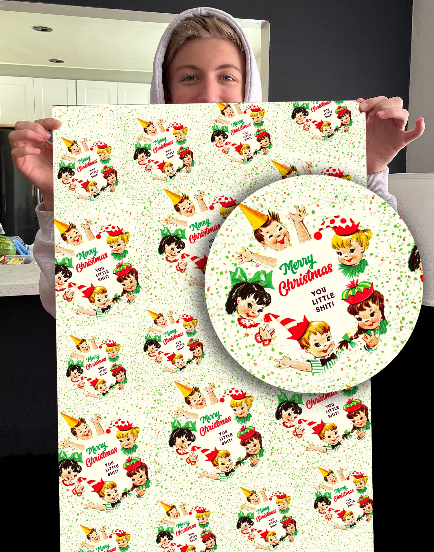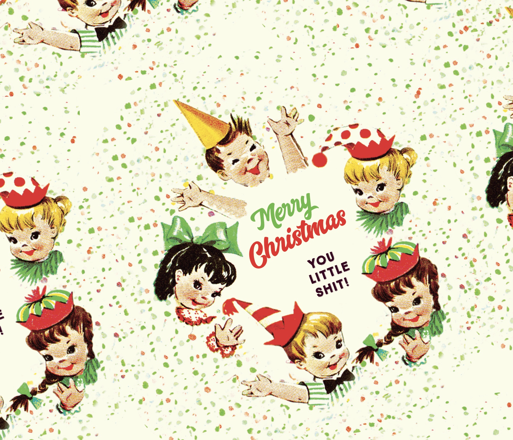 Check out our fun greeting cards too! "Merry Christmas you little shit!" SINGLE FLAT SHEETS: sheet is 19" x 29" AMAZING quality, Gorgeous color... Printed in CALIFORNIA Double sided design.